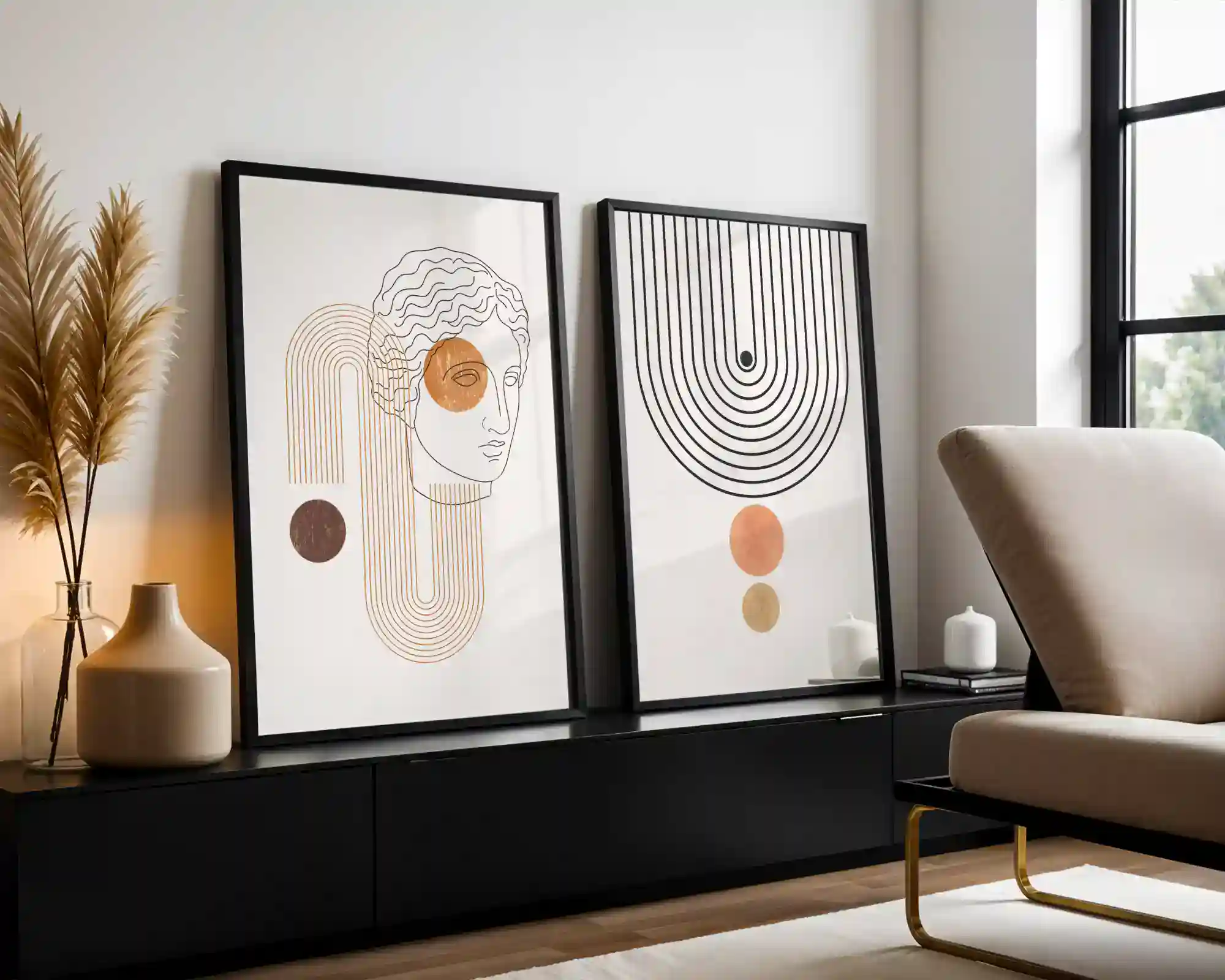 2’li Set | Boho Çizgi Detay Dekoratif Tablolar