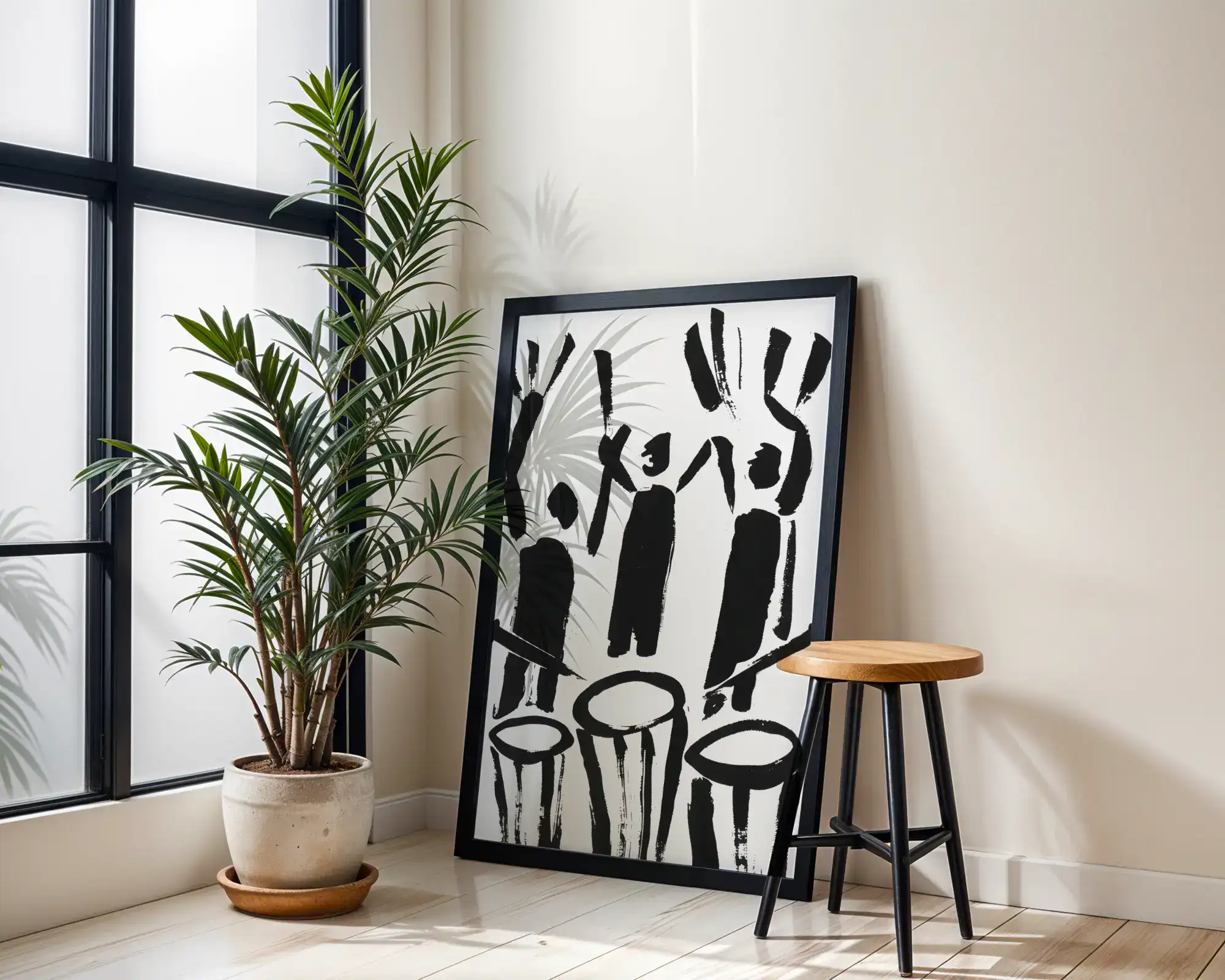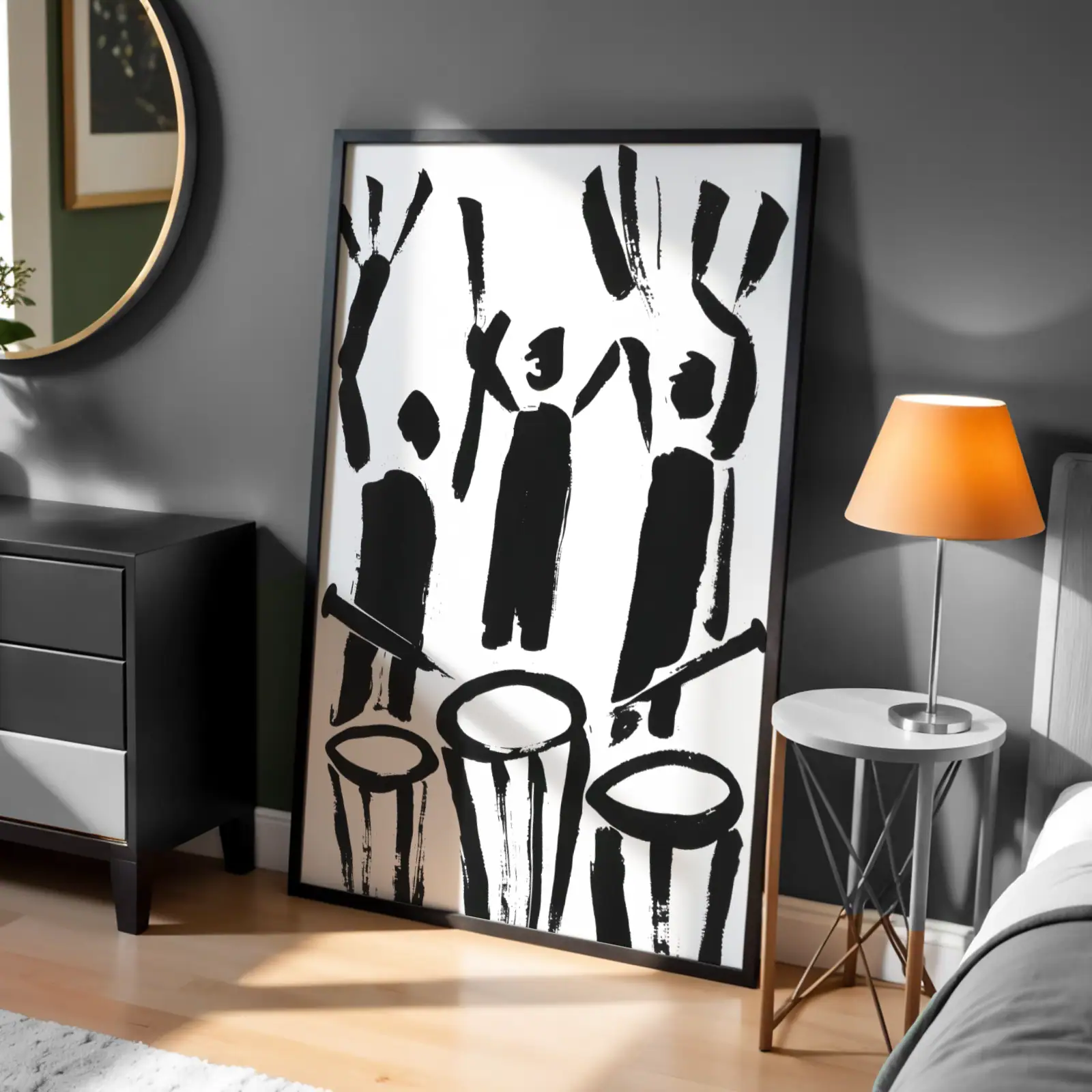 Tablolar, özenle seçilmiş siyah çerçevesiyle birlikte gönderilir.