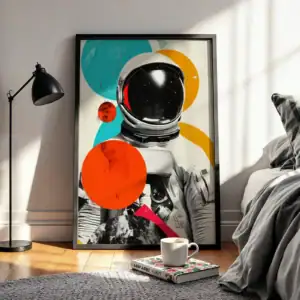 Astronot ve Renkli Geometri Dekoratif Tablo