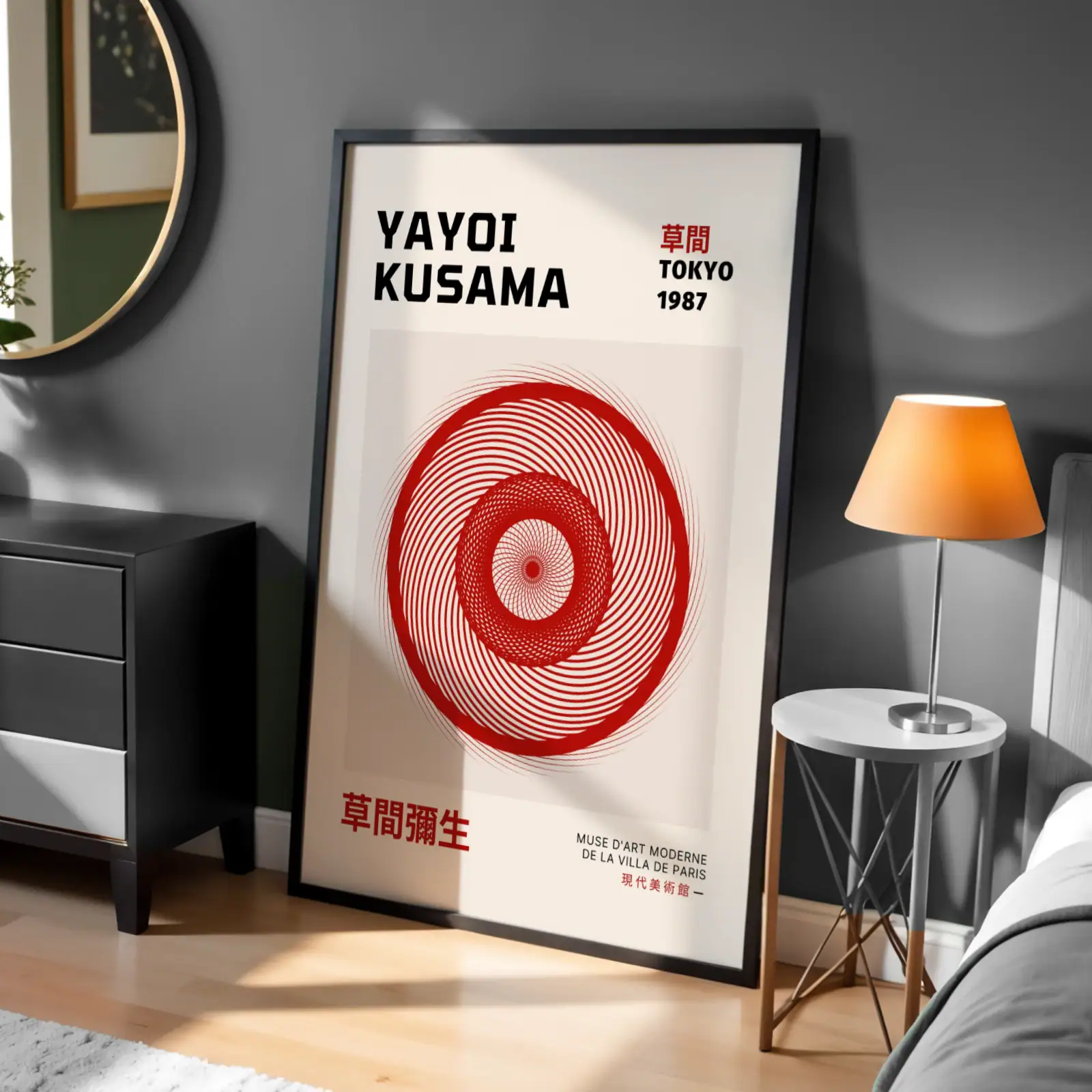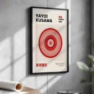Kusama Yayoi Kırmızı Spiral Dekoratif Tablo