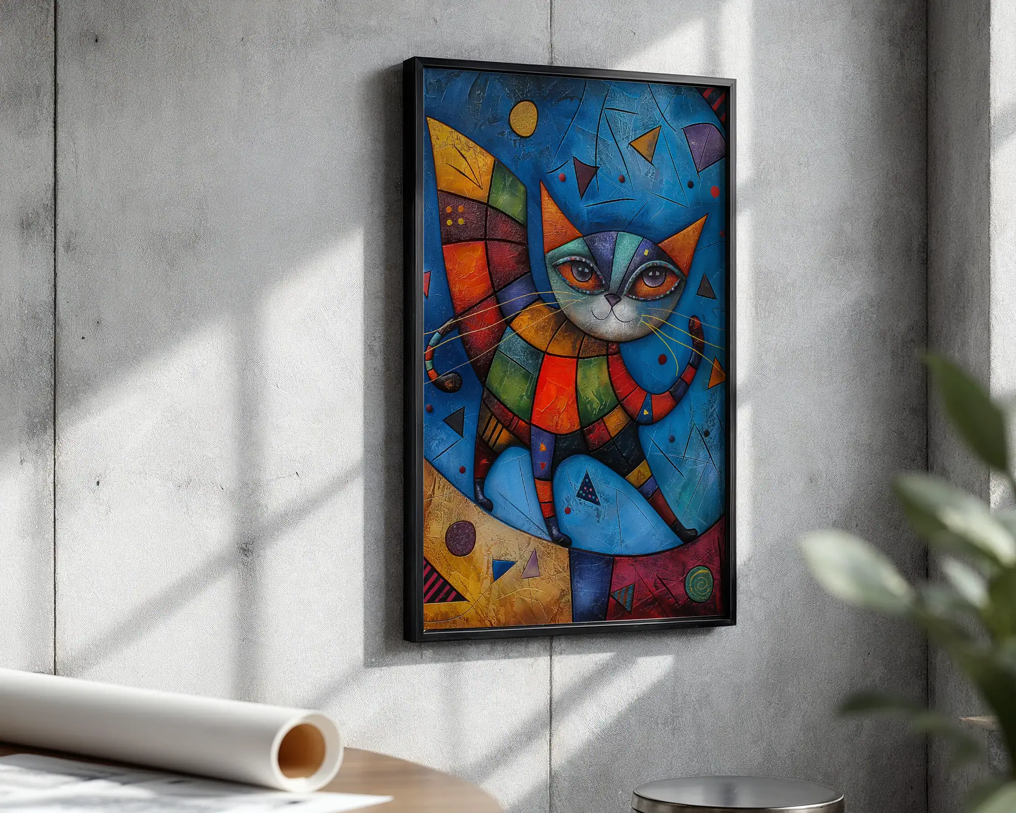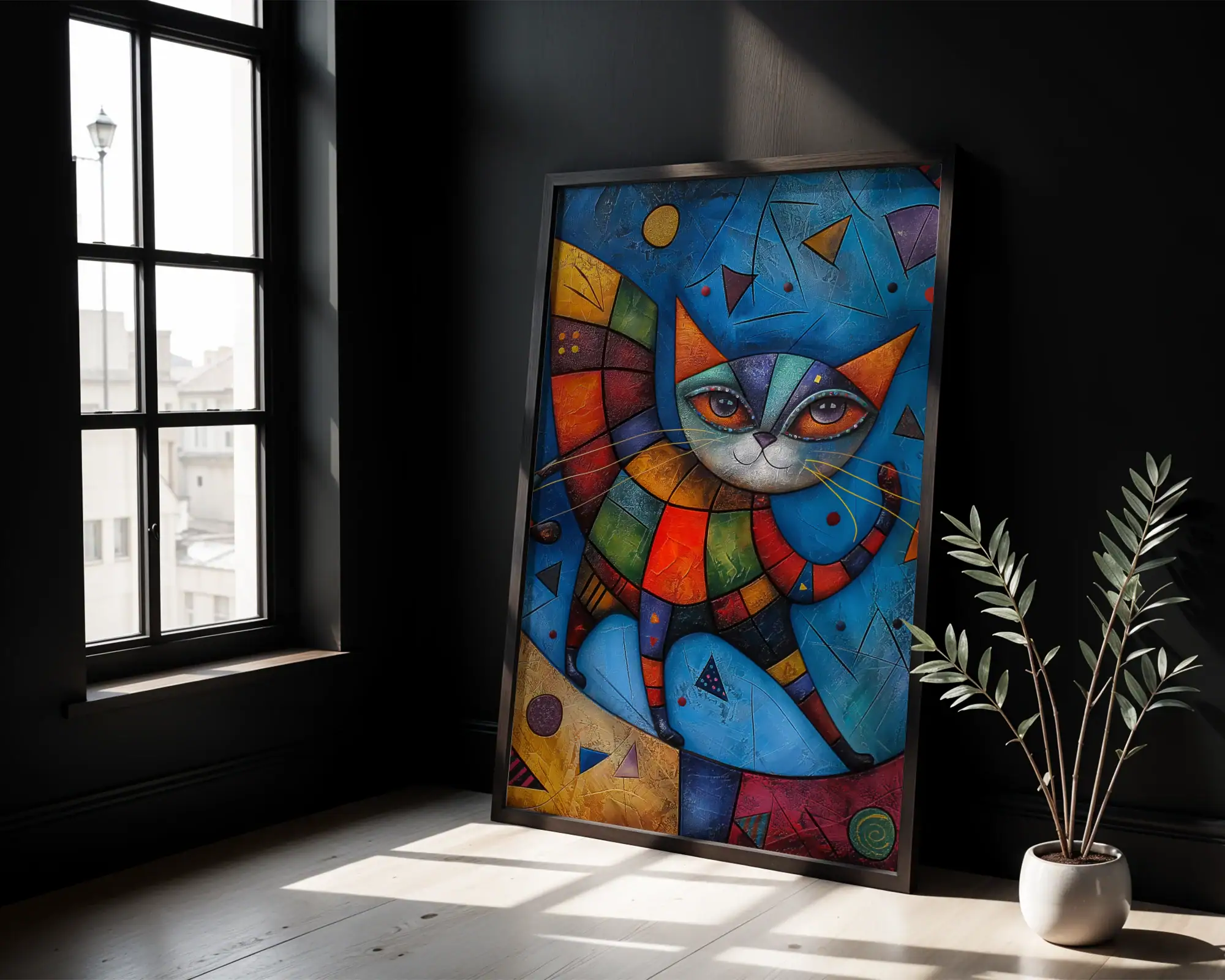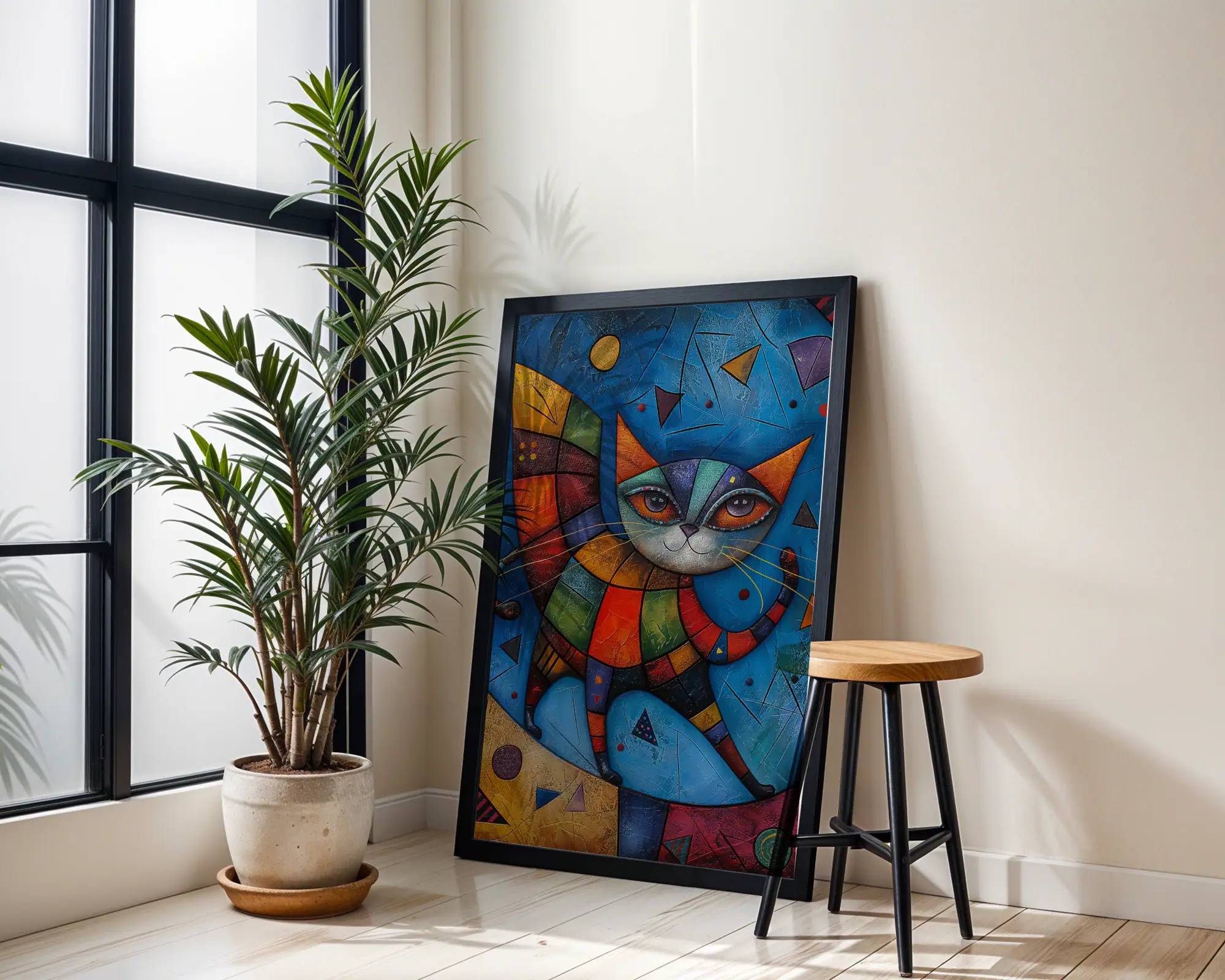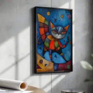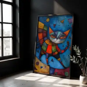 Parçalı Renk Kedi Figürü Dekoratif Tablo