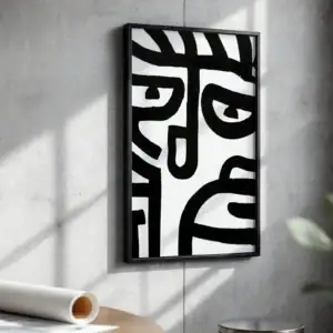 Siyah Beyaz Çizgili İnsan Yüzü Minimal Tablo